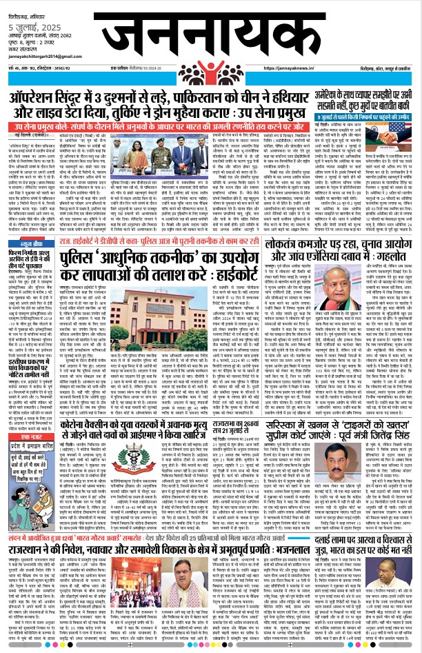 ChittorgarhJannayak-Chittor_5-July-2025 admin8 months ago8 months ago01 mins Jannayak-Chittor_5-July-2025 Post navigation Previous: /Jannayak-Jaipur_5-July-2025Next: Jannayak_Kota_07_comp Leave a Reply Cancel replyYour email address will not be published. Required fields are marked *Comment * Name * Email * Website Save my name, email, and website in this browser for the next time I comment.