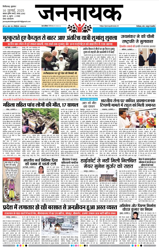 ChittorgarhJannayak Chittor_16 July 2025 admin8 months ago8 months ago00 min Post navigation Previous: Jannayak Jaipur_16 July 2025Next: Jannayak Kota_17 July 2025 Leave a Reply Cancel replyYour email address will not be published. Required fields are marked *Comment * Name * Email * Website Save my name, email, and website in this browser for the next time I comment.