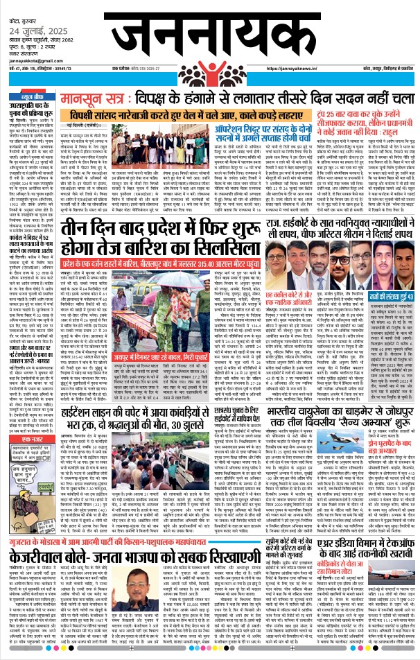 KotaJannayak Kota_24 July 2025 admin8 months ago8 months ago00 min Post navigation Previous: Jannayak Chittor_21 July 2025Next: Jannayak Jaipur_24 July 2025 Leave a Reply Cancel replyYour email address will not be published. Required fields are marked *Comment * Name * Email * Website Save my name, email, and website in this browser for the next time I comment.