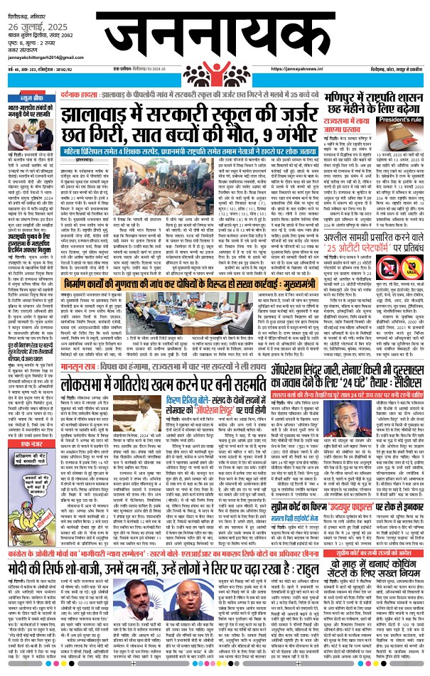 ChittorgarhJannayak Chittor_26 July 2025 admin8 months ago8 months ago00 min Post navigation Previous: Jannayak Jaipur_26 July 2025Next: Jannayak_Kota_28_comp Leave a Reply Cancel replyYour email address will not be published. Required fields are marked *Comment * Name * Email * Website Save my name, email, and website in this browser for the next time I comment.