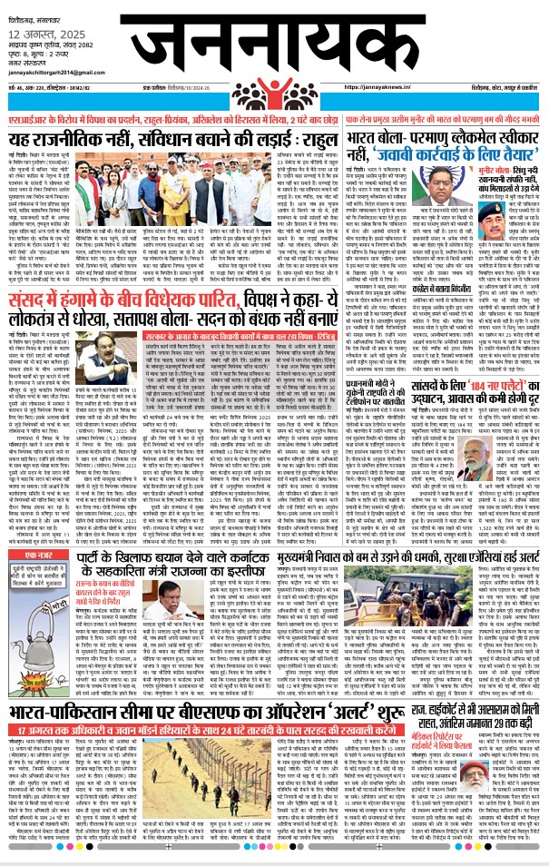 ChittorgarhJannayak Chittor_12 Aug 2025 admin7 months ago7 months ago01 mins Jannayak Chittor_12 Aug 2025 Post navigation Previous: Jannayak Jaipur_12 Aug 2025Next: Jannayak_Kota_13_comp Leave a Reply Cancel replyYour email address will not be published. Required fields are marked *Comment * Name * Email * Website Save my name, email, and website in this browser for the next time I comment.