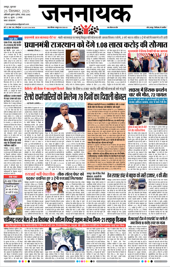 JaipurJannayak Jaipur_25 Sep 2025 admin6 months ago6 months ago01 mins Jannayak Jaipur_25 Sep 2025 Post navigation Previous: Jannayak Kota_25 Sep 2025Next: Jannayak Chittor_25 Sep 2025 Leave a Reply Cancel replyYour email address will not be published. Required fields are marked *Comment * Name * Email * Website Save my name, email, and website in this browser for the next time I comment.