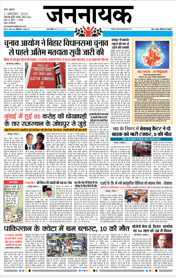 KotaJannayak Kota_1 Oct 2025 admin5 months ago5 months ago00 min Post navigation Previous: Jannayak Chittor_30 Sep 2025Next: Jannayak Jaipur_1 Oct 2025 Leave a Reply Cancel replyYour email address will not be published. Required fields are marked *Comment * Name * Email * Website Save my name, email, and website in this browser for the next time I comment.