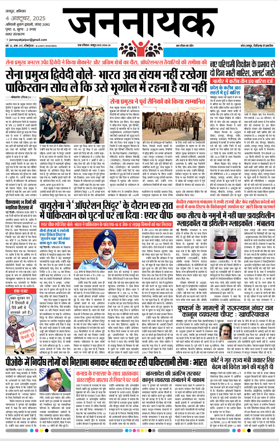 JaipurJannayak Jaipur_4 Oct 2025 admin5 months ago5 months ago01 mins Jannayak Jaipur_4 Oct 2025 Post navigation Previous: Jannayak Kota_4 Oct 2025Next: Jannayak Chittor_4 Oct 2025 Leave a Reply Cancel replyYour email address will not be published. Required fields are marked *Comment * Name * Email * Website Save my name, email, and website in this browser for the next time I comment.