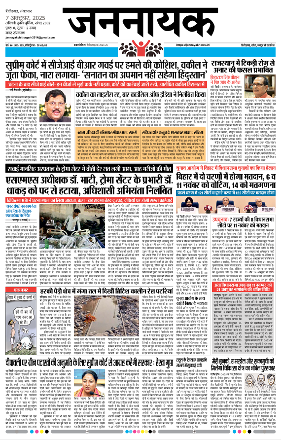 ChittorgarhJannayak Chittor_7 Oct 2025 admin5 months ago5 months ago01 mins Jannayak Chittor_7 Oct 2025 Post navigation Previous: Jannayak Jaipur_7 Oct 2025Next: Jannatak_Kota_14 Leave a Reply Cancel replyYour email address will not be published. Required fields are marked *Comment * Name * Email * Website Save my name, email, and website in this browser for the next time I comment.