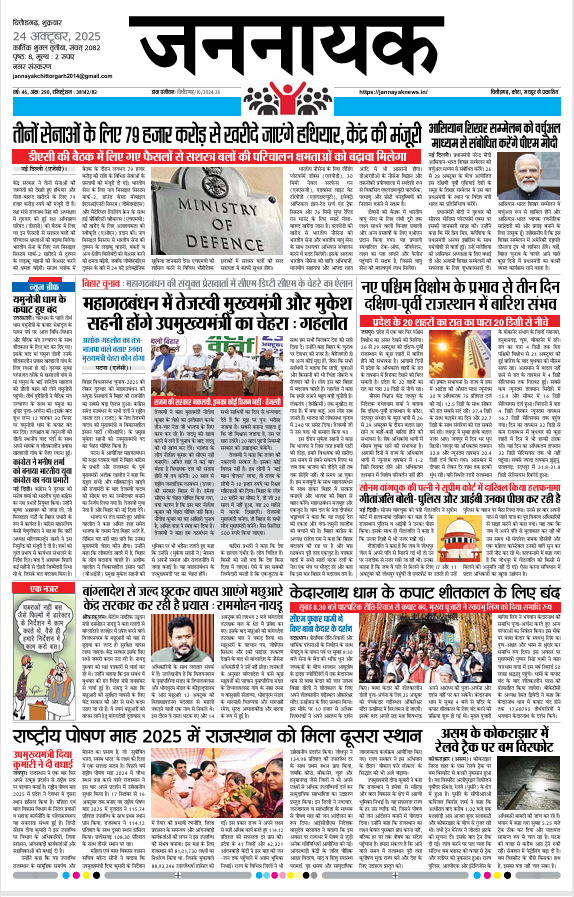 ChittorgarhJannayak Chittor_24 Oct 2025 admin5 months ago01 mins Jannayak Chittor_24 Oct 2025 Post navigation Previous: Jannayak Jaipur_24 Oct 2025Next: Jannayak Kota_25 Oct 2025 Leave a Reply Cancel replyYour email address will not be published. Required fields are marked *Comment * Name * Email * Website Save my name, email, and website in this browser for the next time I comment.