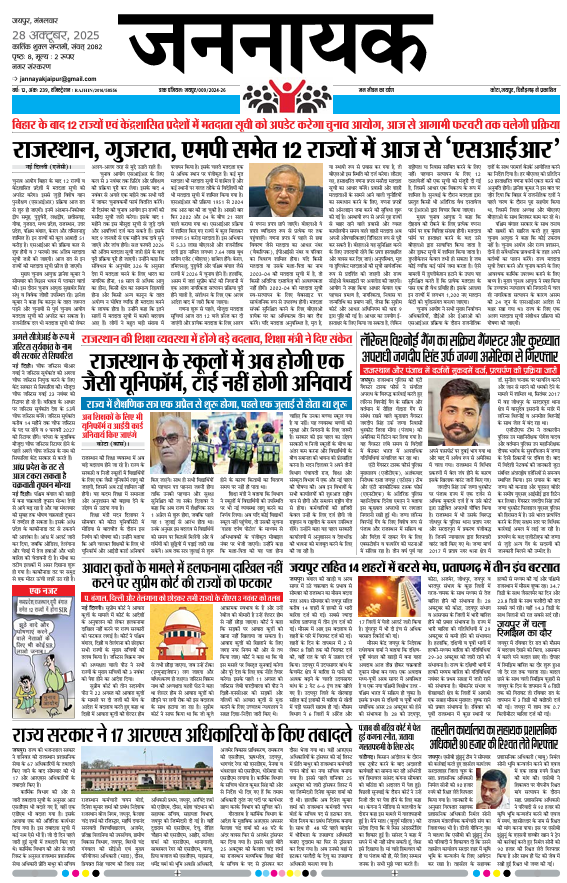JaipurJannayak Jaipur_28 Oct 2025 admin4 months ago4 months ago01 mins Jannayak Jaipur_28 Oct 2025 Post navigation Previous: Jannayak Kota_28 Oct 2025Next: Jannayak Kota_29 Oct 2025 Leave a Reply Cancel replyYour email address will not be published. Required fields are marked *Comment * Name * Email * Website Save my name, email, and website in this browser for the next time I comment.