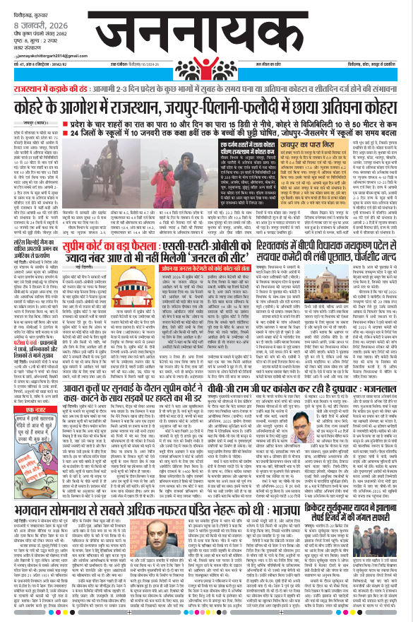 JaipurJannayak_Jaipur_08_comp admin2 months ago2 months ago01 mins Jannayak_Jaipur_08_comp Post navigation Previous: JANNAYAK_KOTA_08_compNext: Jannayak_Chitor_08_compr Leave a Reply Cancel replyYour email address will not be published. Required fields are marked *Comment * Name * Email * Website Save my name, email, and website in this browser for the next time I comment.