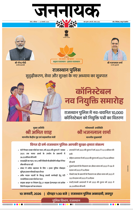 KotaJannayak Kota_10 Jan 2026 admin2 months ago2 months ago01 mins Jannayak Kota_10 Jan 2026 Post navigation Previous: Jannayak Chittor_9 Jan 2026Next: Jannayak Jaipur_10 Jan 2026 Leave a Reply Cancel replyYour email address will not be published. Required fields are marked *Comment * Name * Email * Website Save my name, email, and website in this browser for the next time I comment.